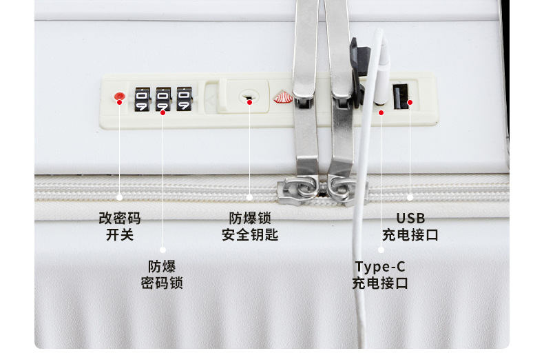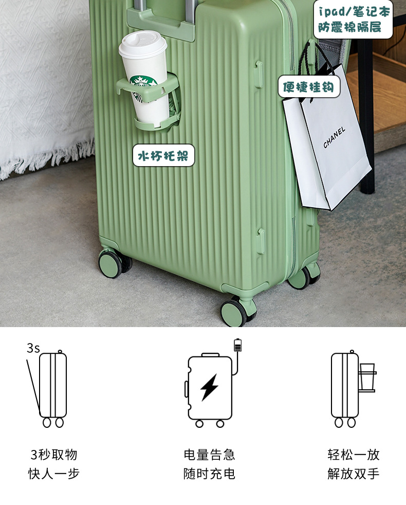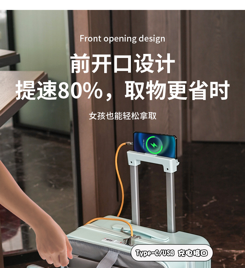 20寸前置开口行李箱男女新款多功能密码旅行箱拉杆箱