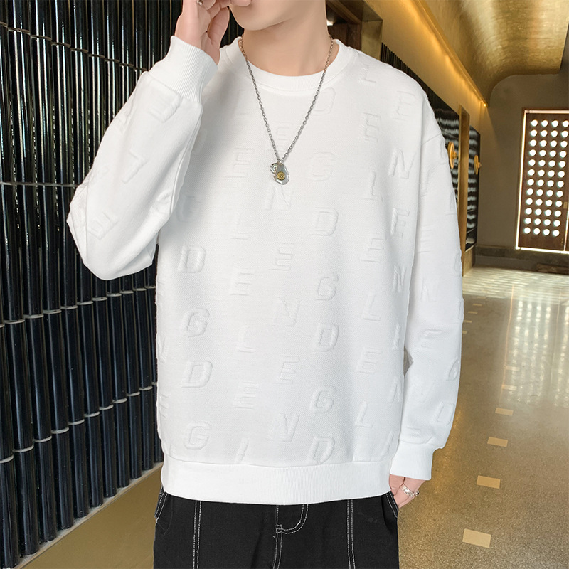 男装卫衣男新款港风潮流纯色提花布宽松百搭长袖上衣服