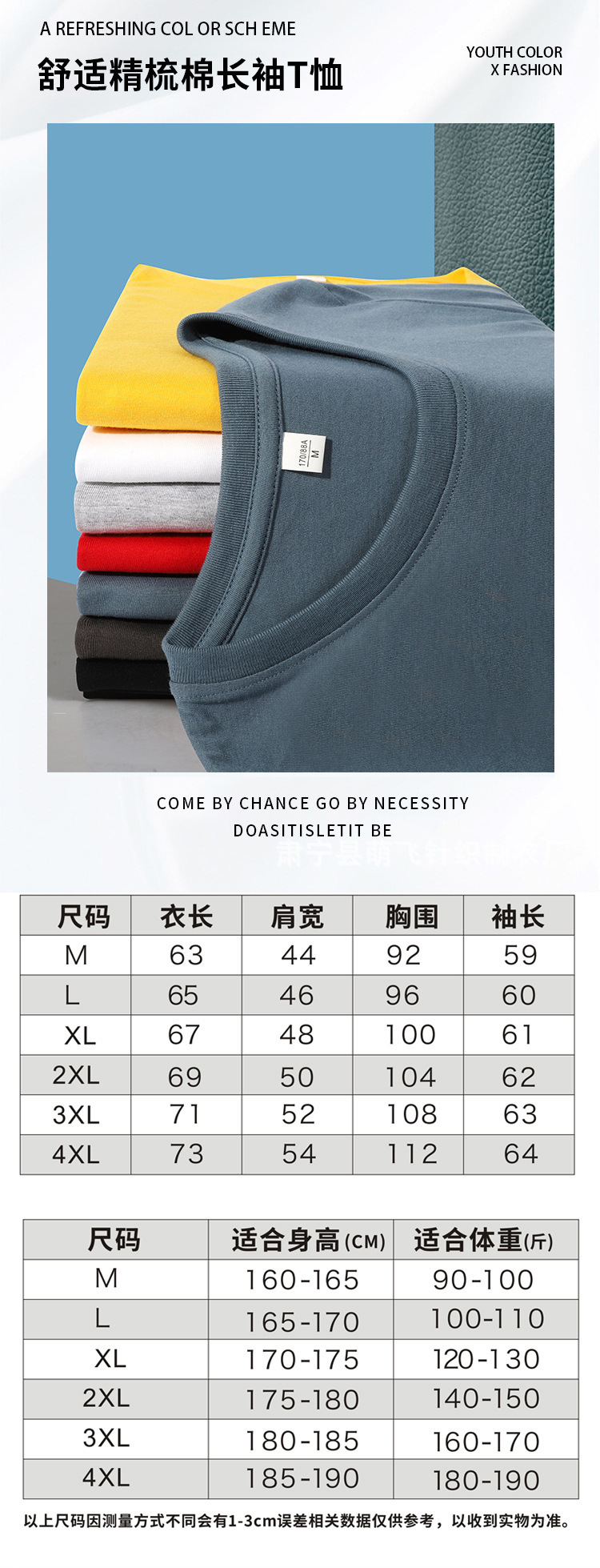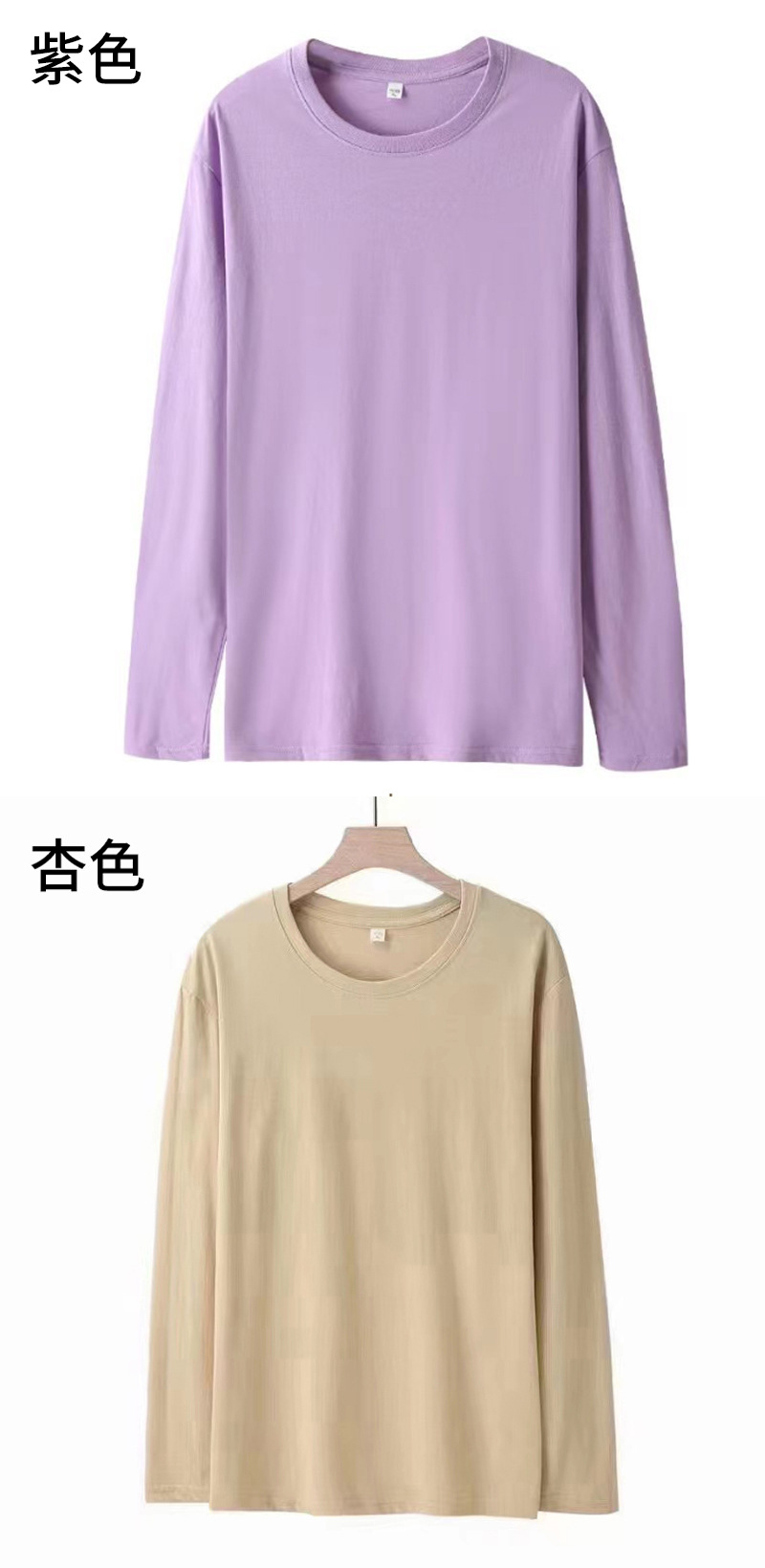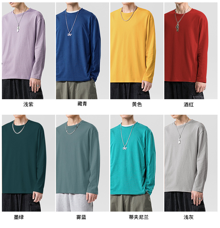男士长袖T恤宽松180克精梳棉圆领袖纯色t恤男装内搭长袖上衣