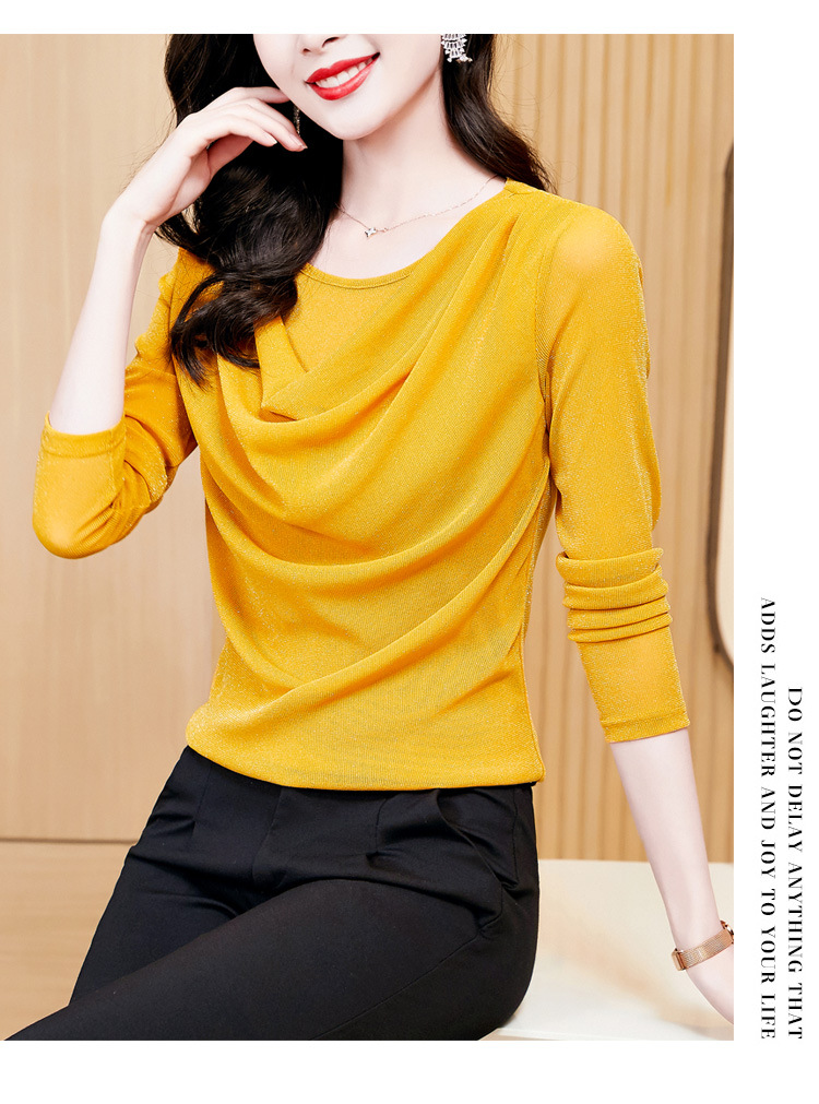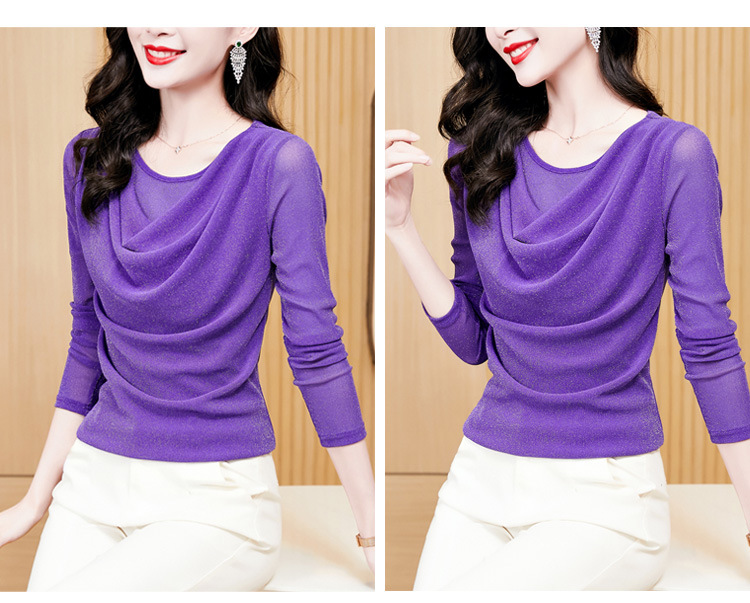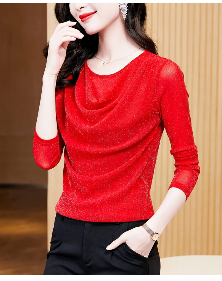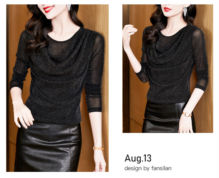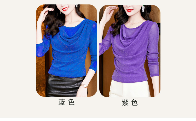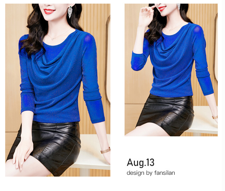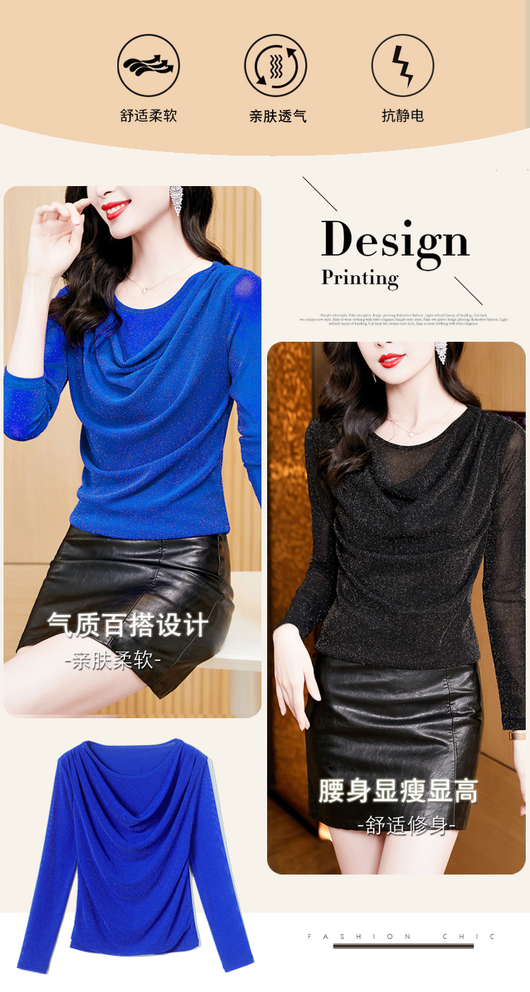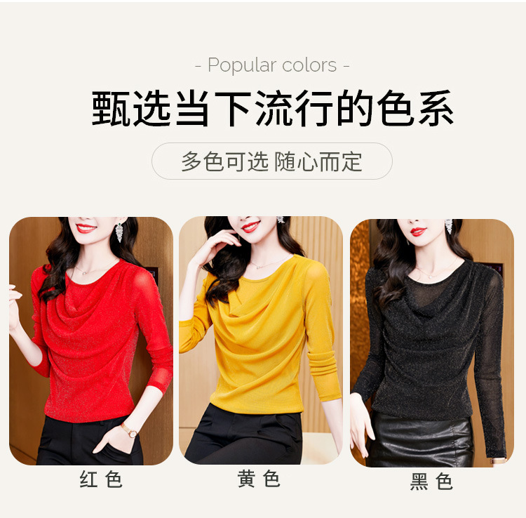 圆领亮丝长袖套头t恤女气质名媛上衣时尚洋气打底衫