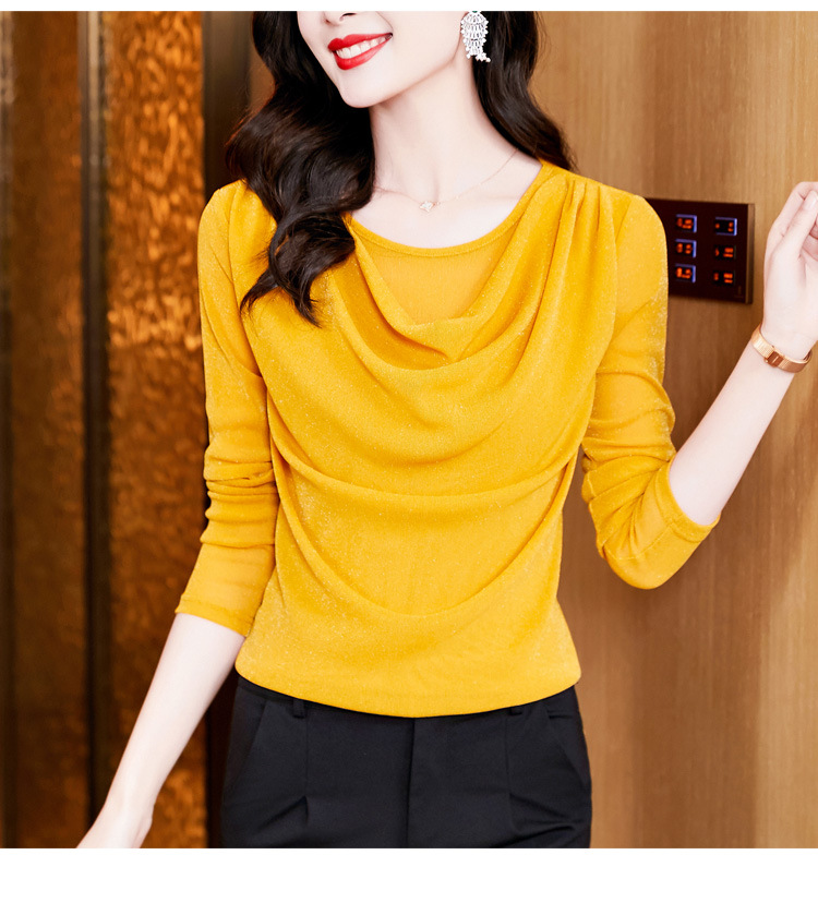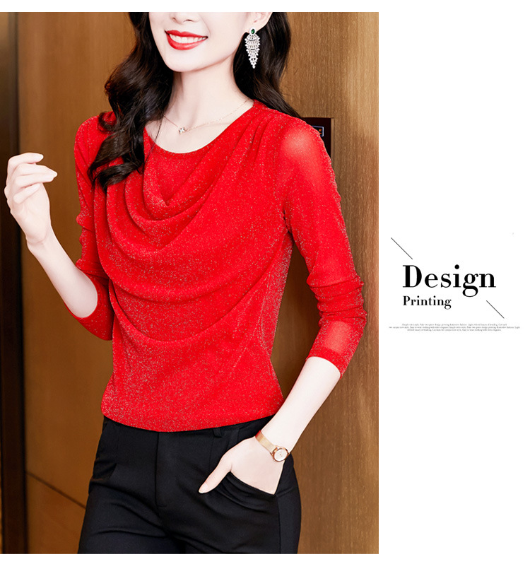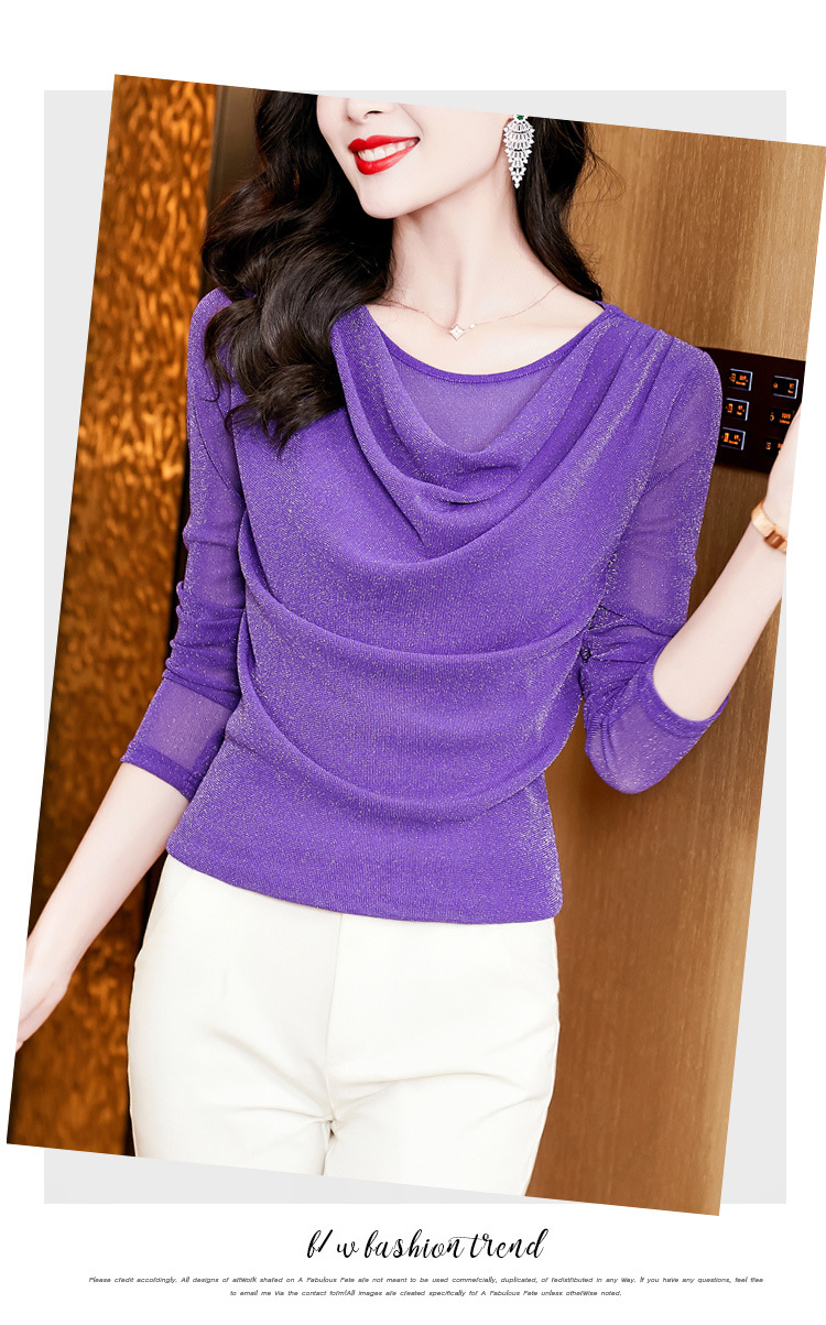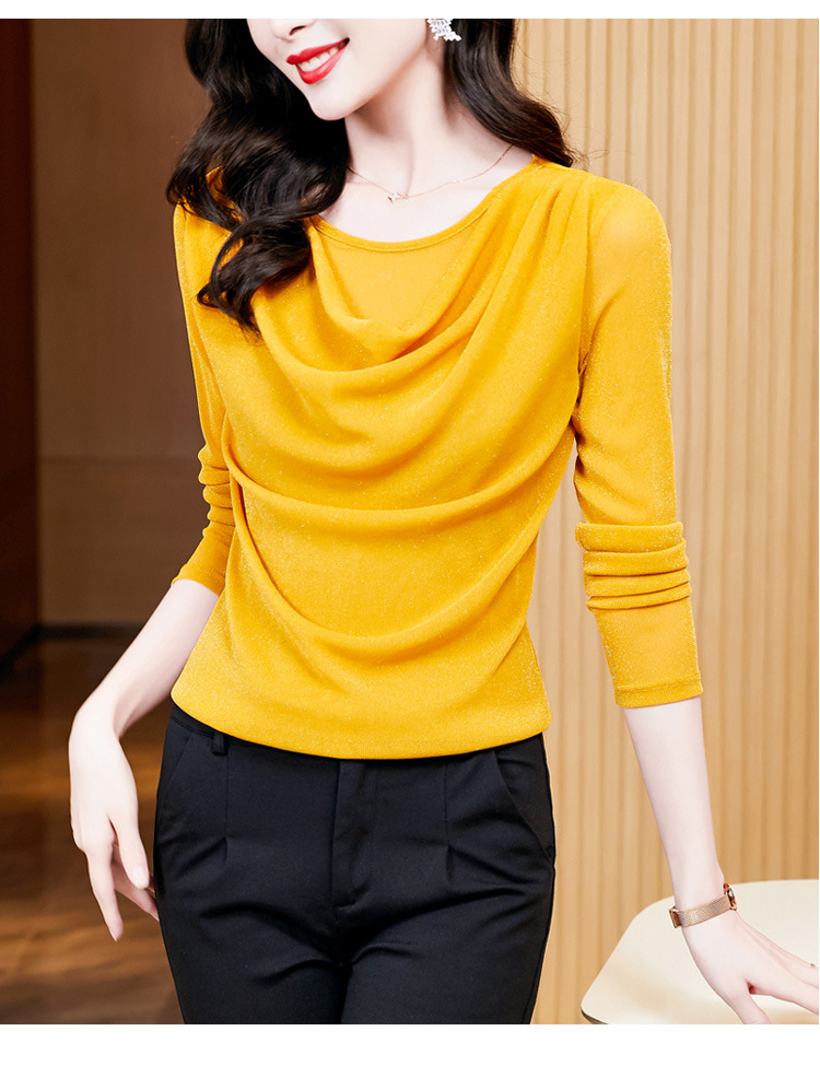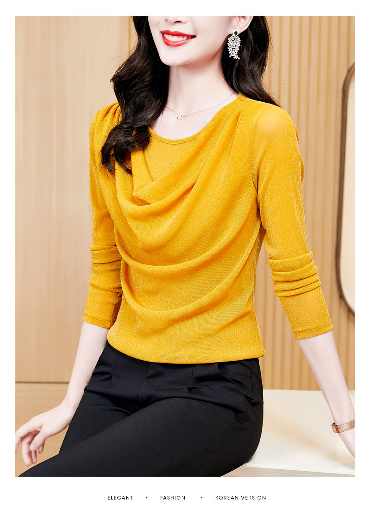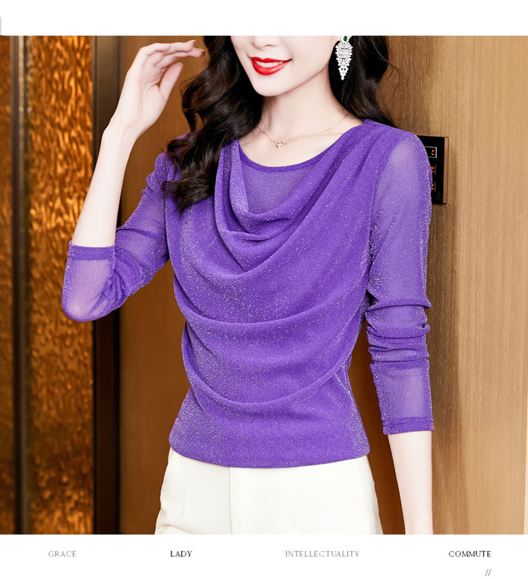 圆领亮丝长袖套头t恤女气质名媛上衣时尚洋气打底衫