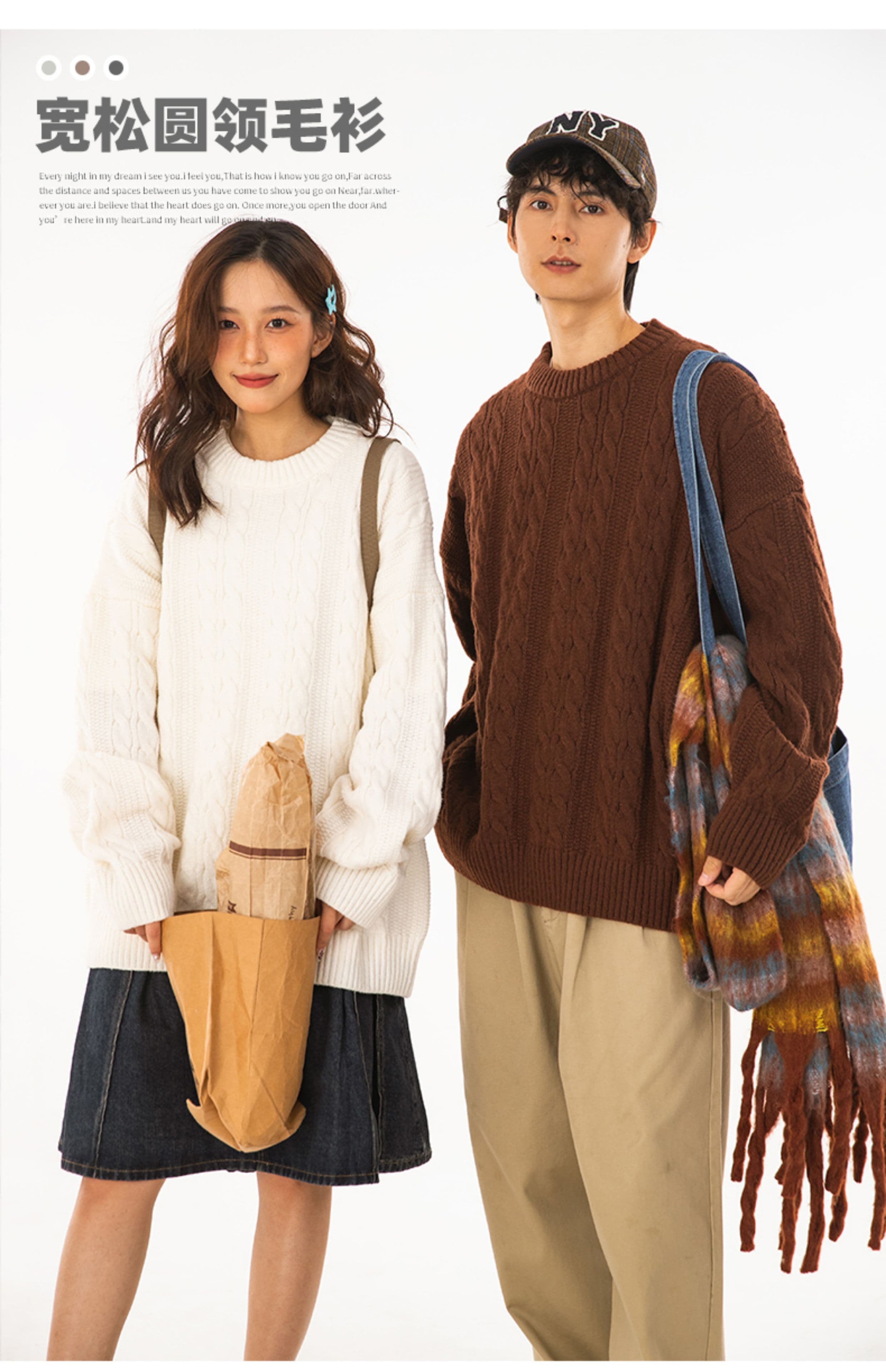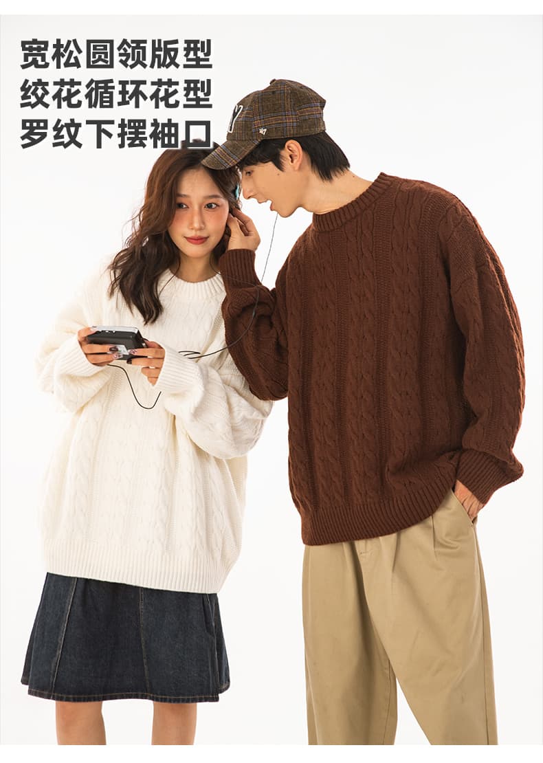 日系复古麻花毛衣男士2025秋冬季情侣圆领针织衫外套
