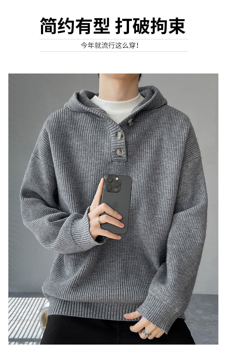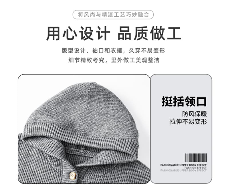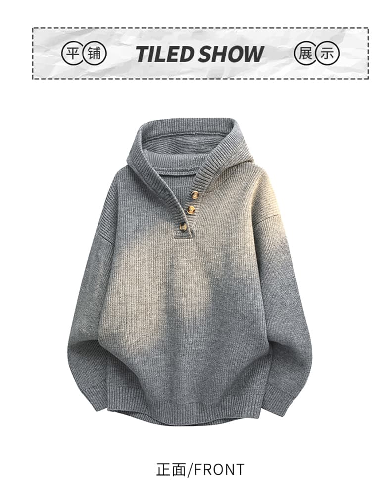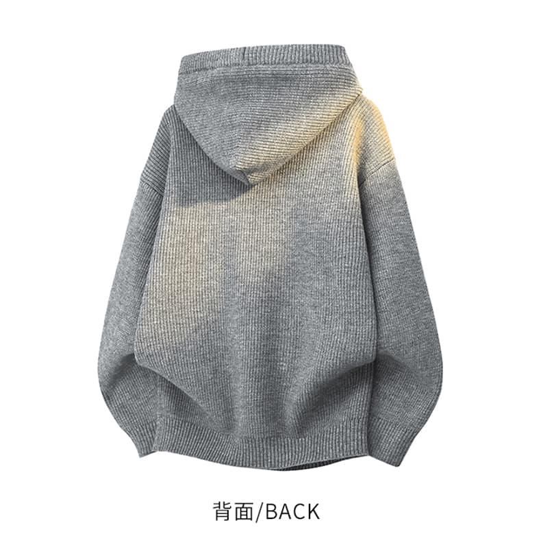 美式复古连帽毛衣男生冬季宽松针织衫外套