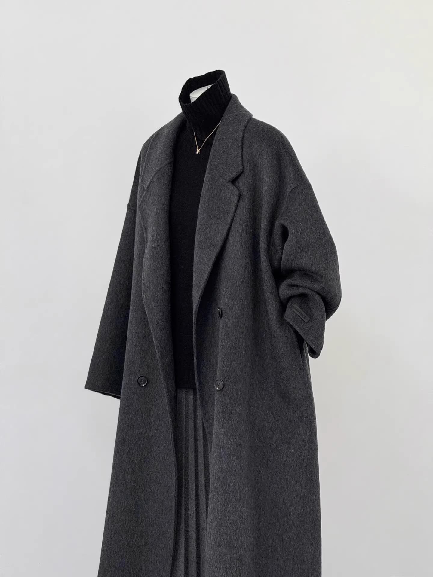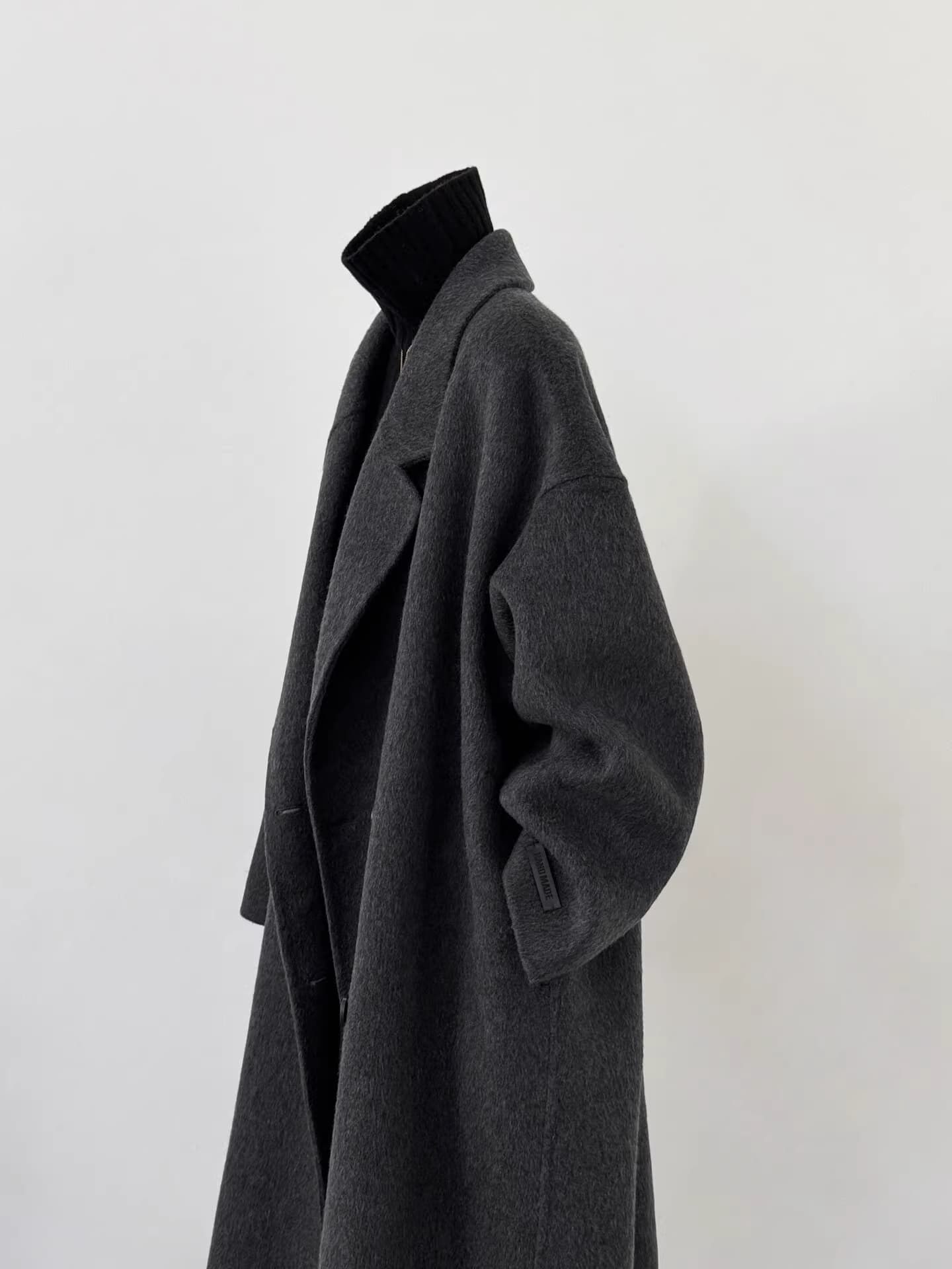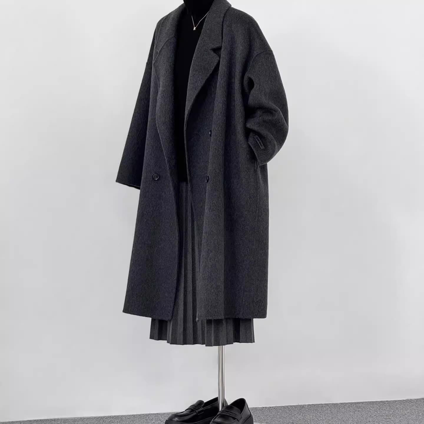 双面羊绒大衣女2025秋冬黑灰色新款韩系宽松中长款高端羊毛呢外套