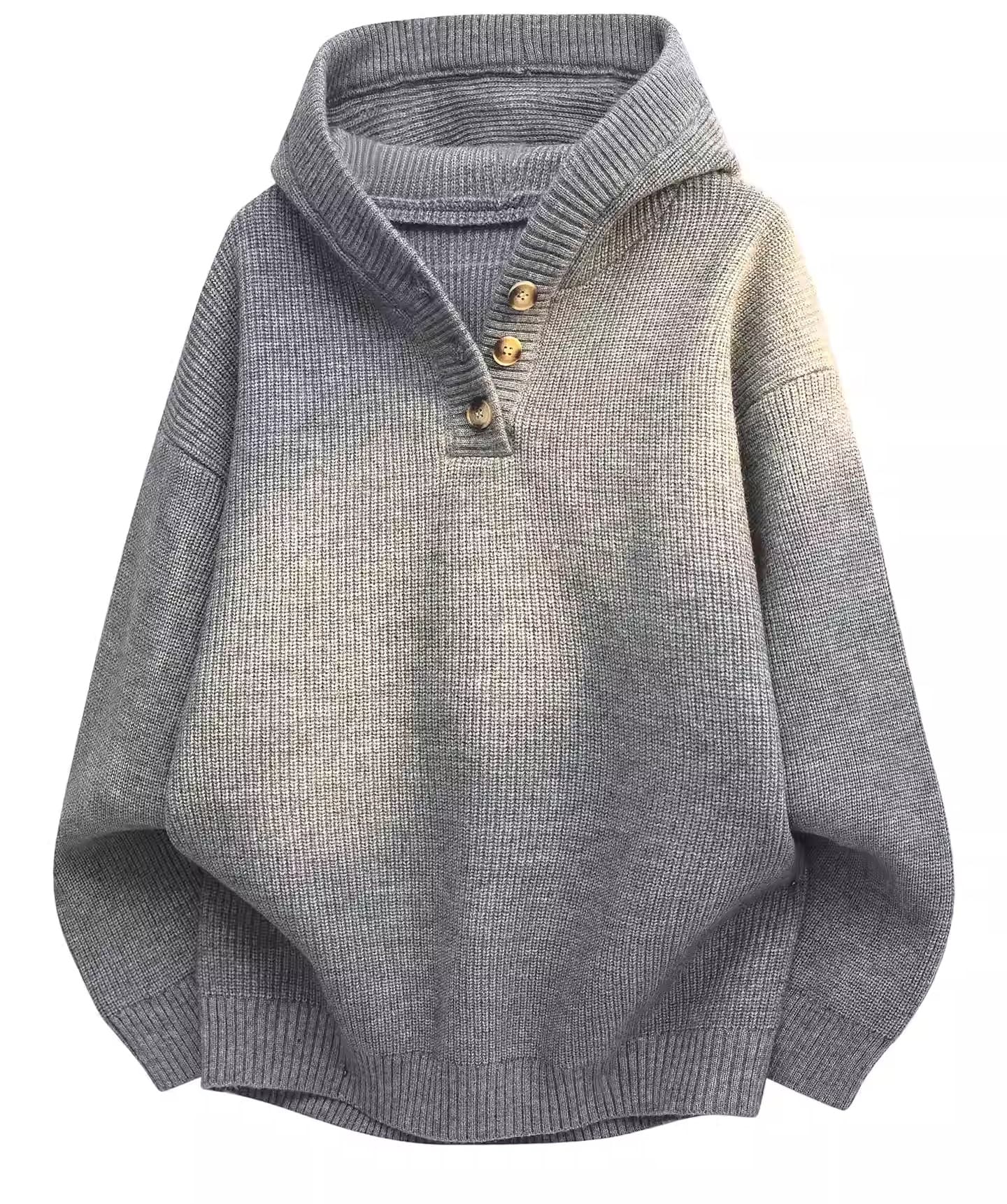美式复古连帽毛衣男生冬季宽松针织衫外套